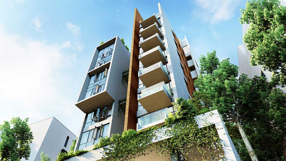 Description: Moondrop, is situated in the tree-lined diplomatic neighborhood of Baridhara Residential Area, stone through away from peaceful lake and park. Each floor is occupied by south facing luxurious 4-bedroom single unit 3850 sft apartments. Green ethos of the neighborhood will welcome you, when you access the building through splendidly curated green lobby at the ground floor with contemporary interior design.